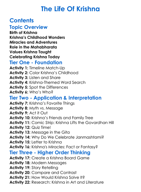 The Life Of Krishna Worksheet Activity Booklet