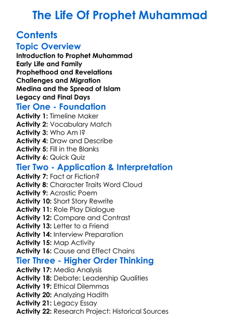 The Life Of Prophet Muhammad Worksheet Activity Booklet
