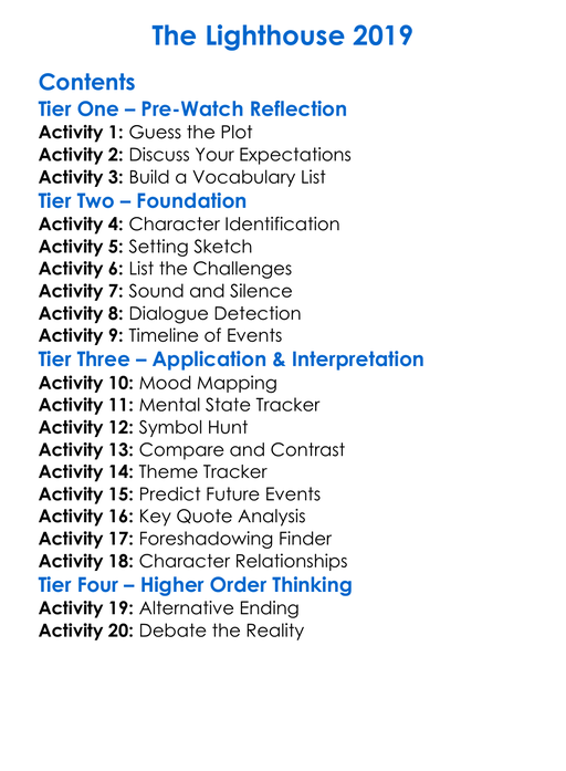 The Lighthouse 2019 Worksheet Activity Booklet