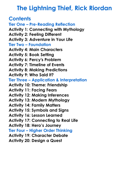 The Lightning Thief Rick Riordan Worksheet Activity Booklet