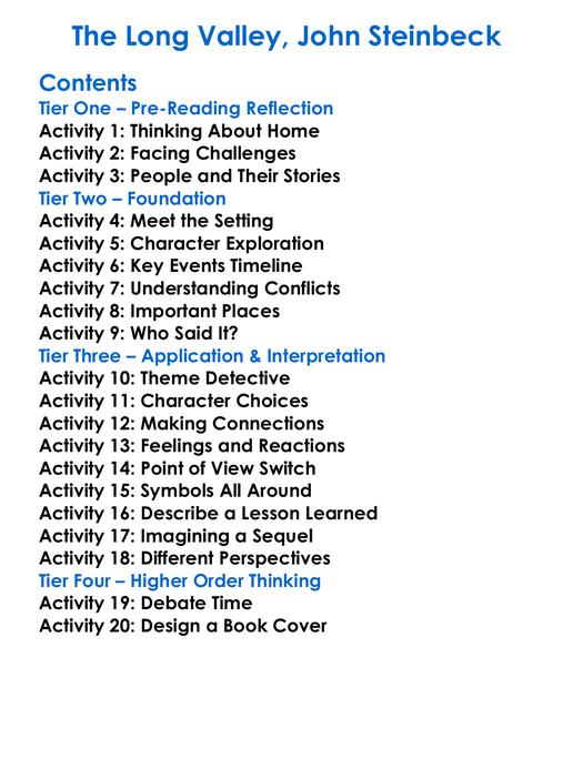 The Long Valley John Steinbeck Worksheet Activity Booklet
