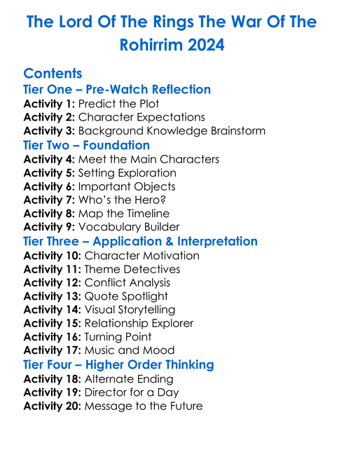 The Lord Of The Rings The War Of The Rohirrim 2024 Worksheet Activity Booklet