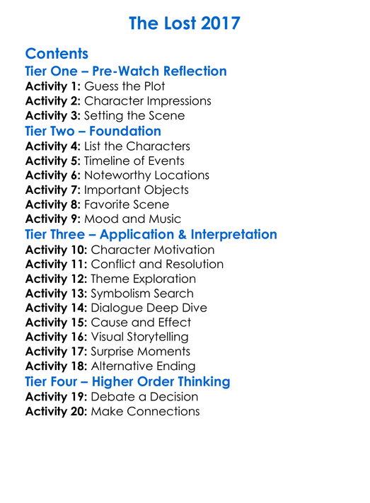 The Lost 2017 Worksheet Activity Booklet