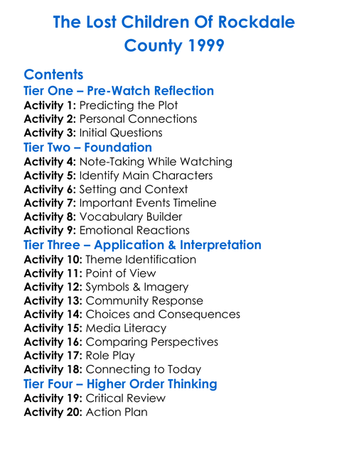 The Lost Children Of Rockdale County 1999 Worksheet Activity Booklet