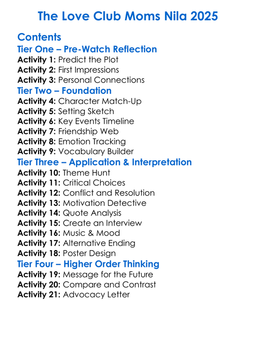 The Love Club Moms Nila 2025 Worksheet Activity Booklet