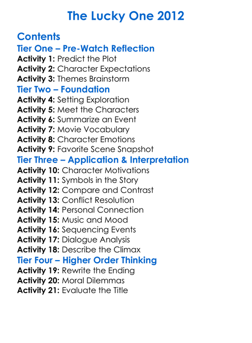 The Lucky One 2012 Worksheet Activity Booklet
