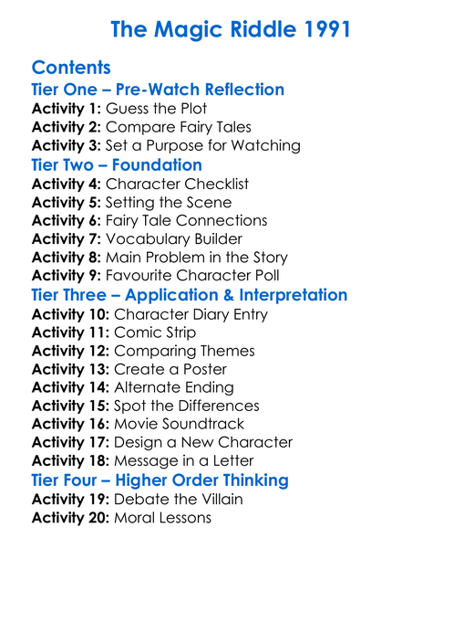 The Magic Riddle 1991 Worksheet Activity Booklet