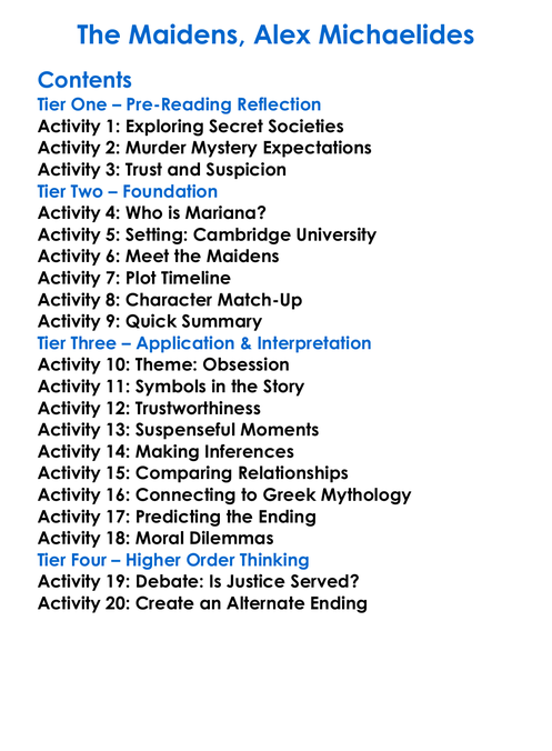The Maidens Alex Michaelides Worksheet Activity Booklet