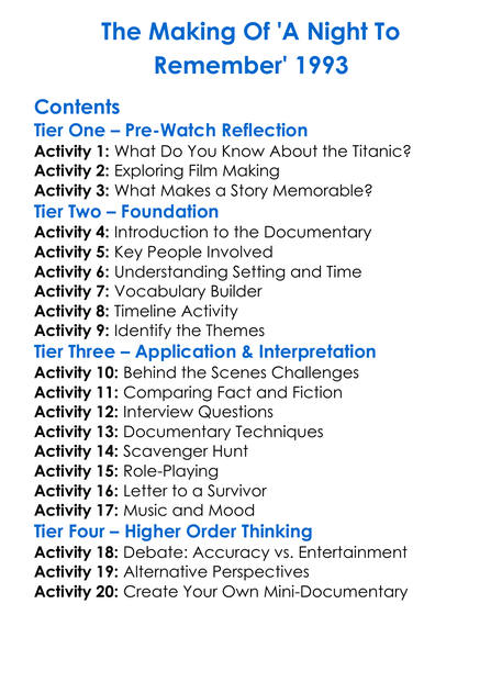 The Making Of A Night To Remember 1993 Worksheet Activity Booklet
