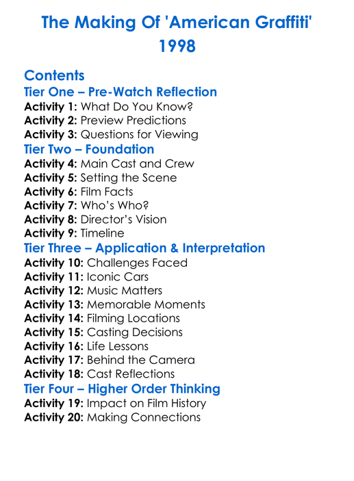 The Making Of American Graffiti 1998 Worksheet Activity Booklet