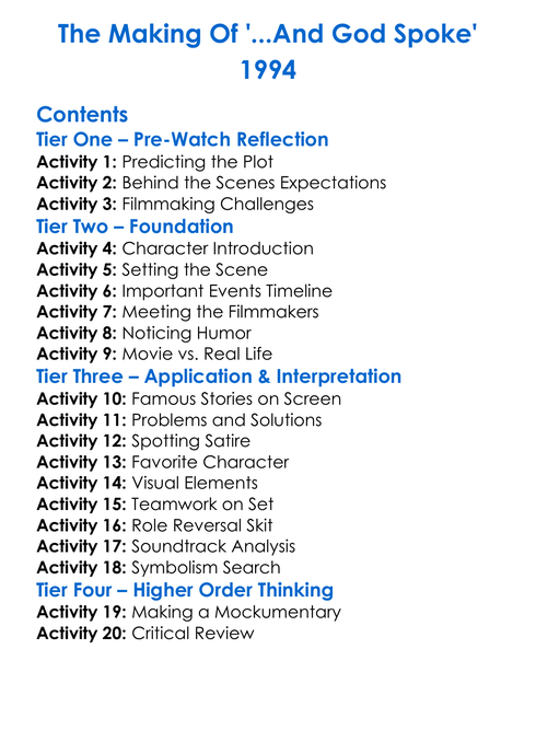 The Making Of And God Spoke 1994 Worksheet Activity Booklet