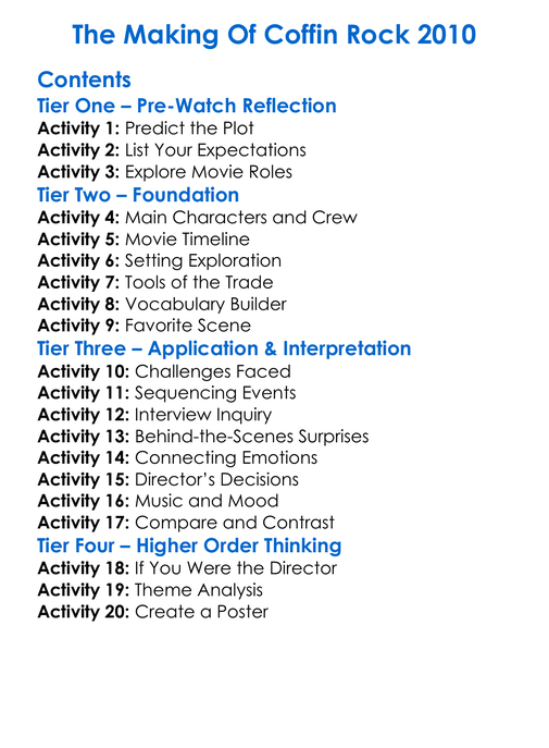 The Making Of Coffin Rock 2010 Worksheet Activity Booklet