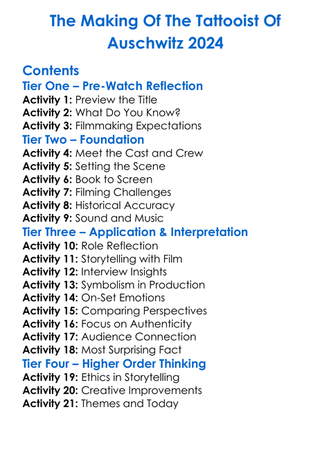 The Making Of The Tattooist Of Auschwitz 2024 Worksheet Activity Booklet