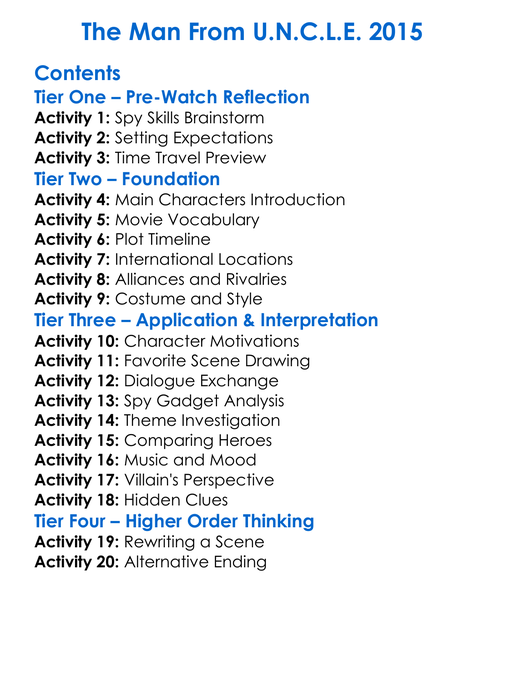 The Man From Uncle 2015 Worksheet Activity Booklet