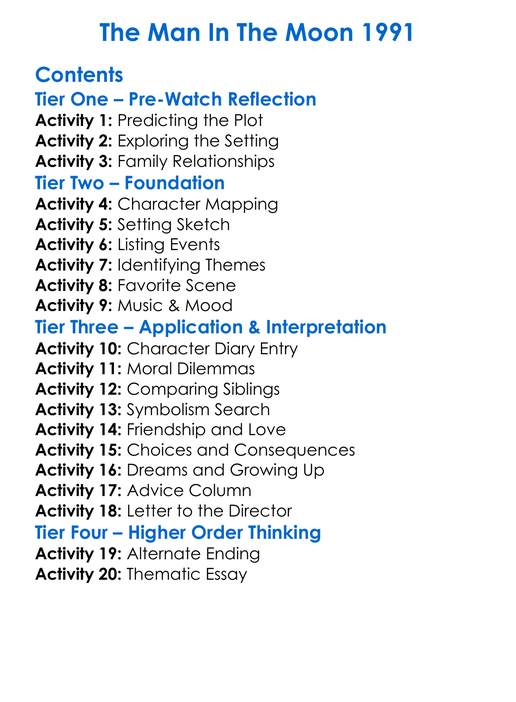 The Man In The Moon 1991 Worksheet Activity Booklet