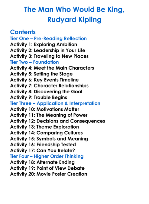The Man Who Would Be King Rudyard Kipling Worksheet Activity Booklet