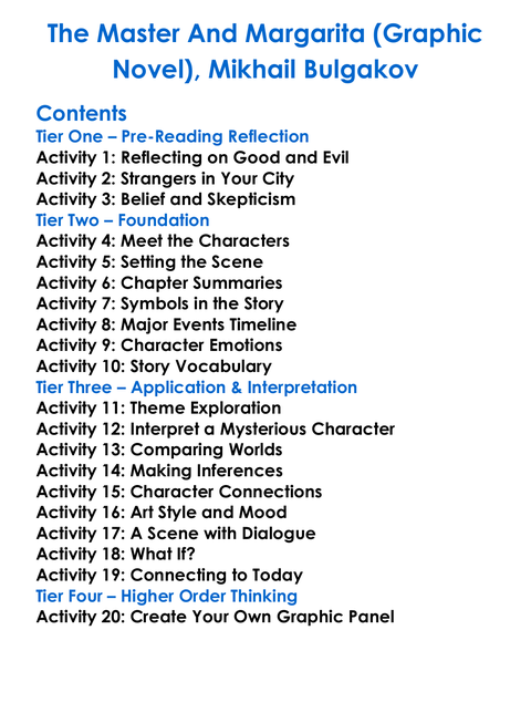 The Master And Margarita Graphic Novel Mikhail Bulgakov Worksheet Activity Booklet