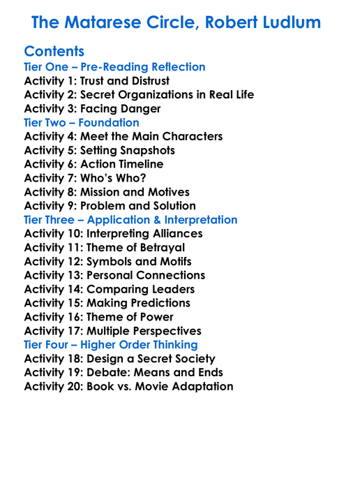 The Matarese Circle Robert Ludlum Worksheet Activity Booklet