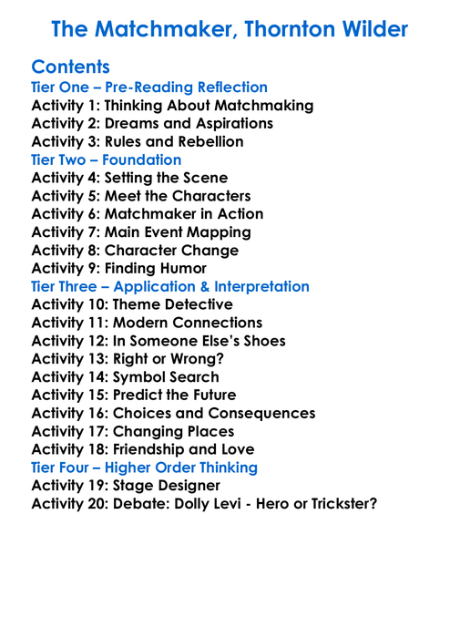 The Matchmaker Thornton Wilder Worksheet Activity Booklet