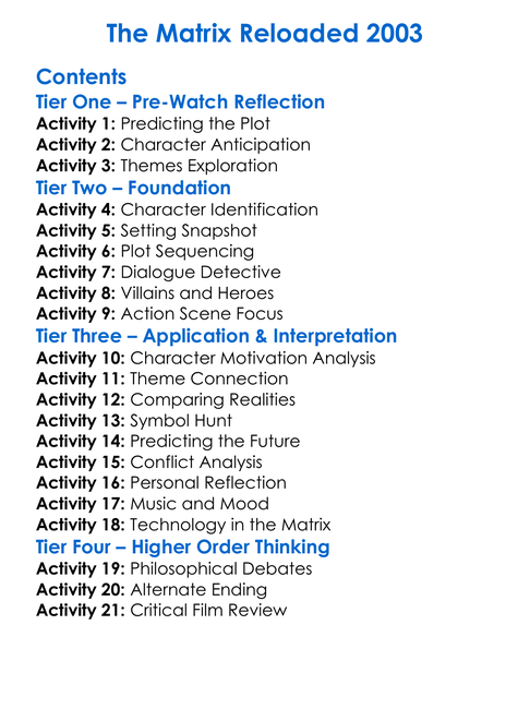 The Matrix Reloaded 2003 Worksheet Activity Booklet