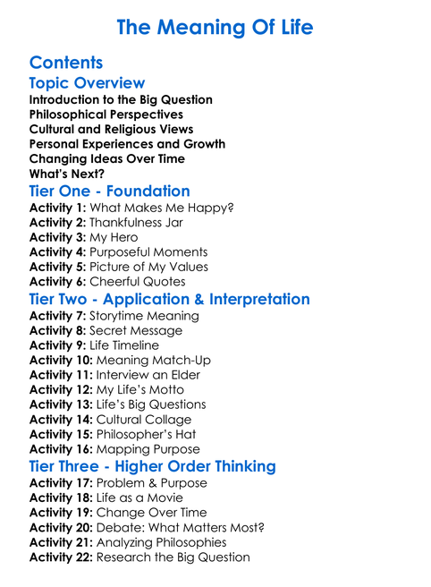The Meaning Of Life Worksheet Activity Booklet