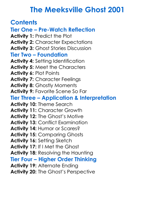 The Meeksville Ghost 2001 Worksheet Activity Booklet