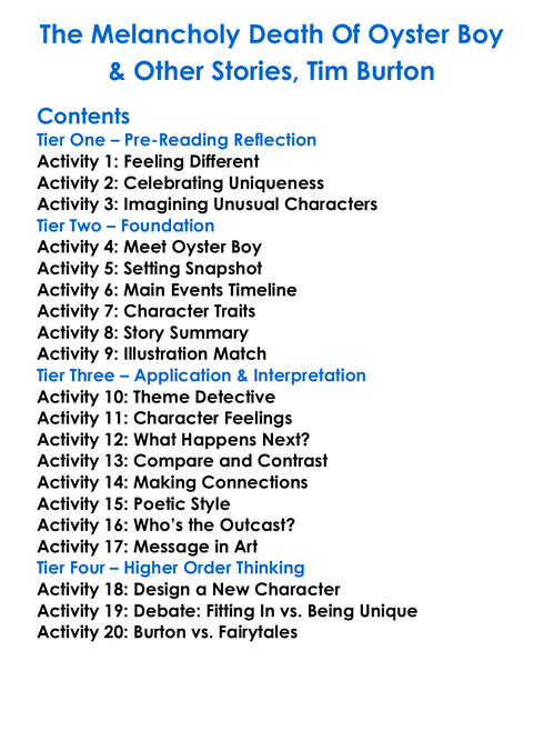 The Melancholy Death Of Oyster Boy Other Stories Tim Burton Worksheet Activity Booklet