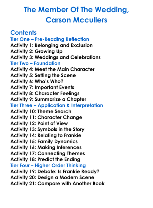 The Member Of The Wedding Carson Mccullers Worksheet Activity Booklet
