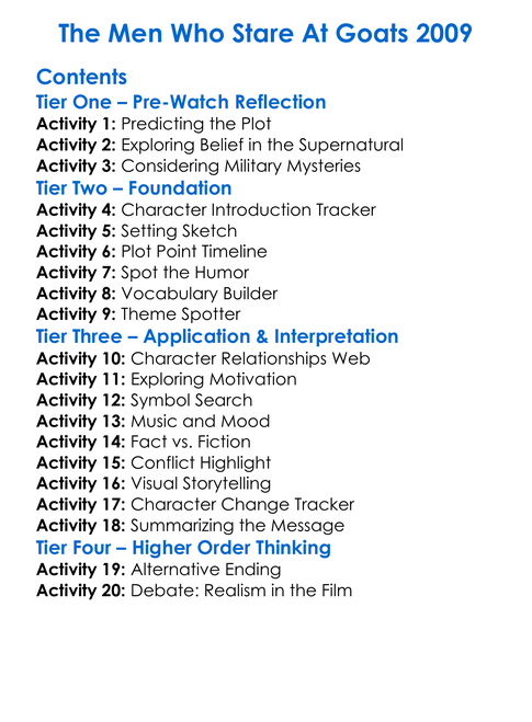 The Men Who Stare At Goats 2009 Worksheet Activity Booklet