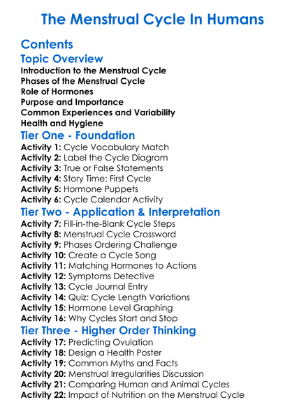 The Menstrual Cycle In Humans Worksheet Activity Booklet