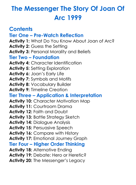 The Messenger The Story Of Joan Of Arc 1999 Worksheet Activity Booklet