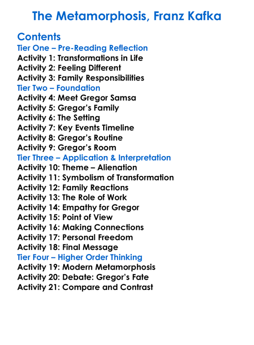 The Metamorphosis Franz Kafka Worksheet Activity Booklet