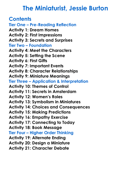 The Miniaturist Jessie Burton Worksheet Activity Booklet