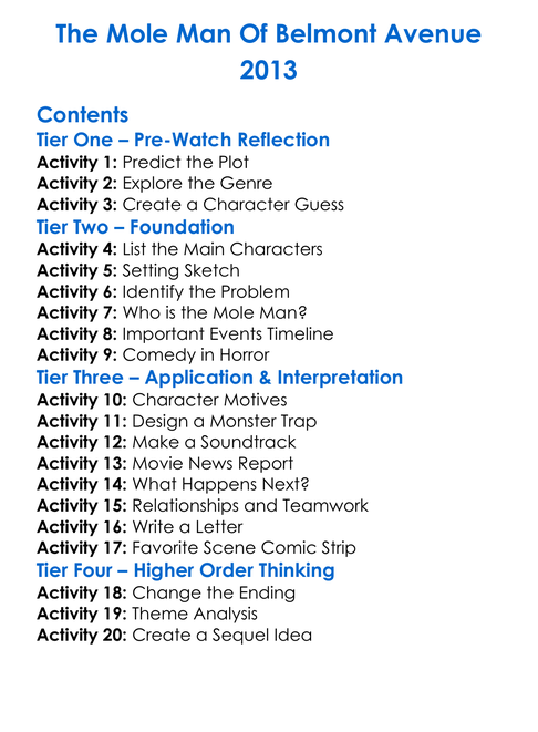 The Mole Man Of Belmont Avenue 2013 Worksheet Activity Booklet