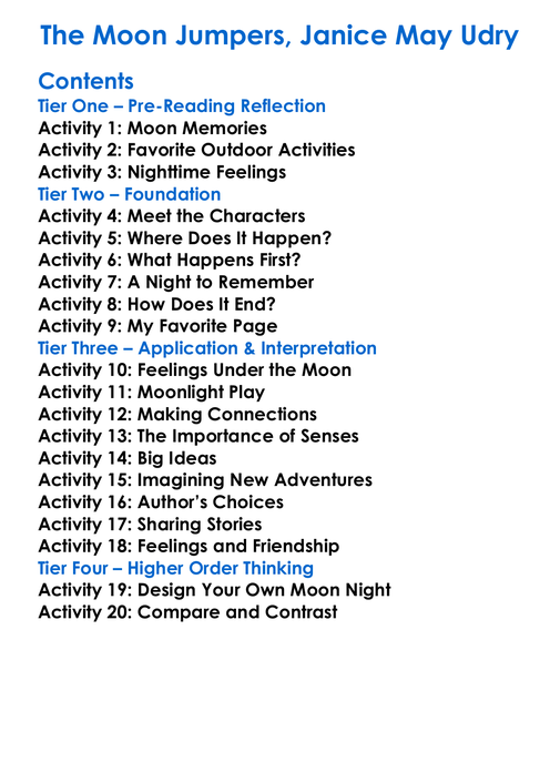 The Moon Jumpers Janice May Udry Worksheet Activity Booklet