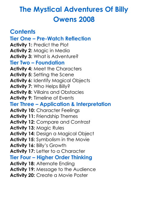 The Mystical Adventures Of Billy Owens 2008 Worksheet Activity Booklet