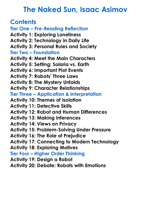The Naked Sun Isaac Asimov Worksheet Activity Booklet