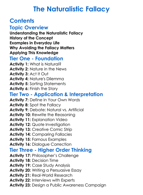 The Naturalistic Fallacy Worksheet Activity Booklet