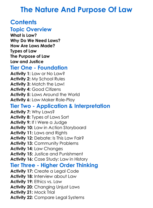 The Nature And Purpose Of Law Worksheet Activity Booklet