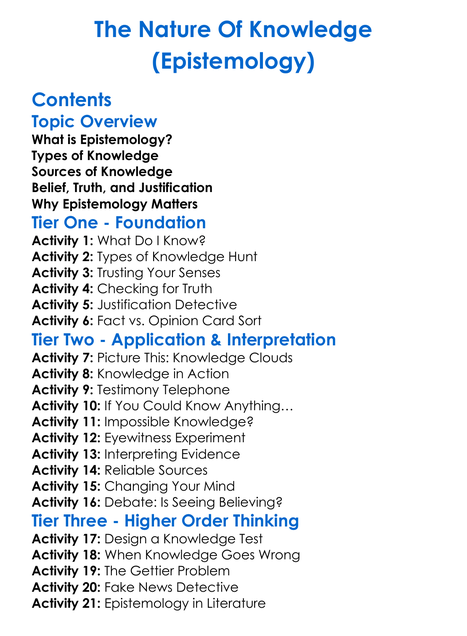 The Nature Of Knowledge Epistemology Worksheet Activity Booklet