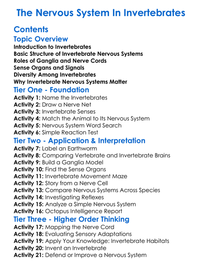 The Nervous System In Invertebrates Worksheet Activity Booklet