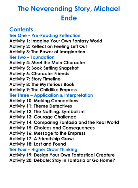 The Neverending Story Michael Ende Worksheet Activity Booklet