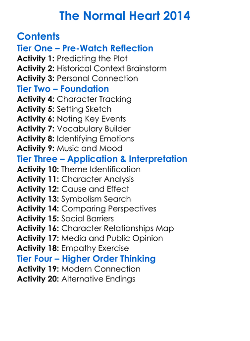 The Normal Heart 2014 Worksheet Activity Booklet