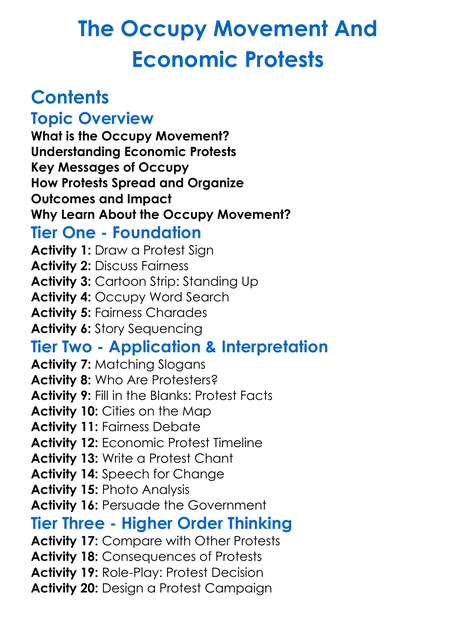 The Occupy Movement And Economic Protests Worksheet Activity Booklet