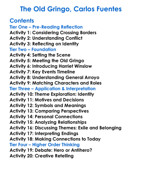 The Old Gringo Carlos Fuentes Worksheet Activity Booklet
