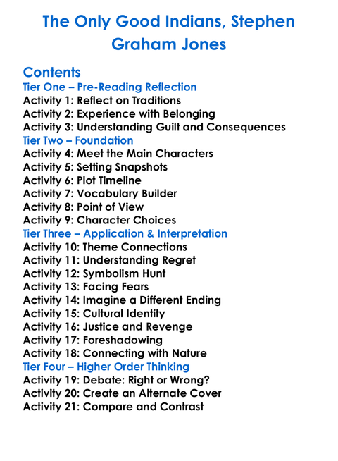 The Only Good Indians Stephen Graham Jones Worksheet Activity Booklet