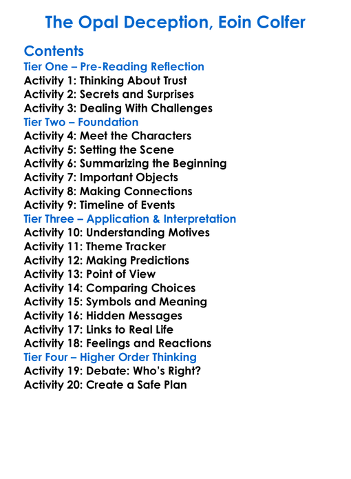 The Opal Deception Eoin Colfer Worksheet Activity Booklet