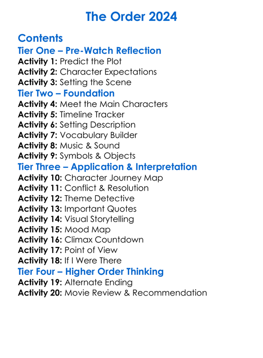 The Order 2024 Worksheet Activity Booklet