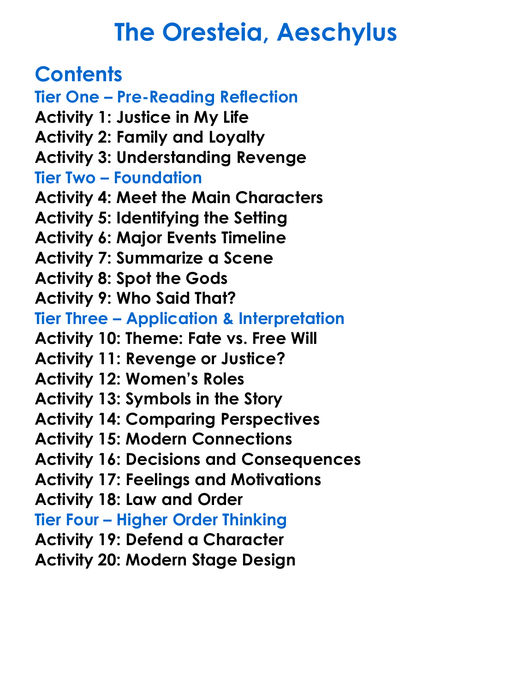 The Oresteia Aeschylus Worksheet Activity Booklet