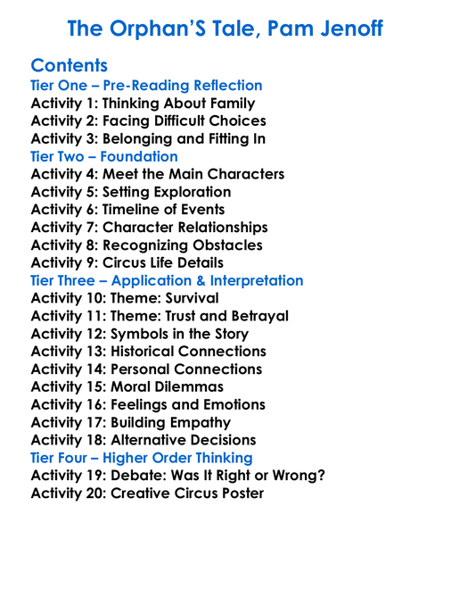 The Orphans Tale Pam Jenoff Worksheet Activity Booklet